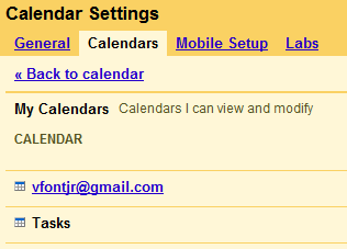 - Select the Calendars tab and click on the calendar with which you want to synchronize. In my example, itâs the one with my email address.