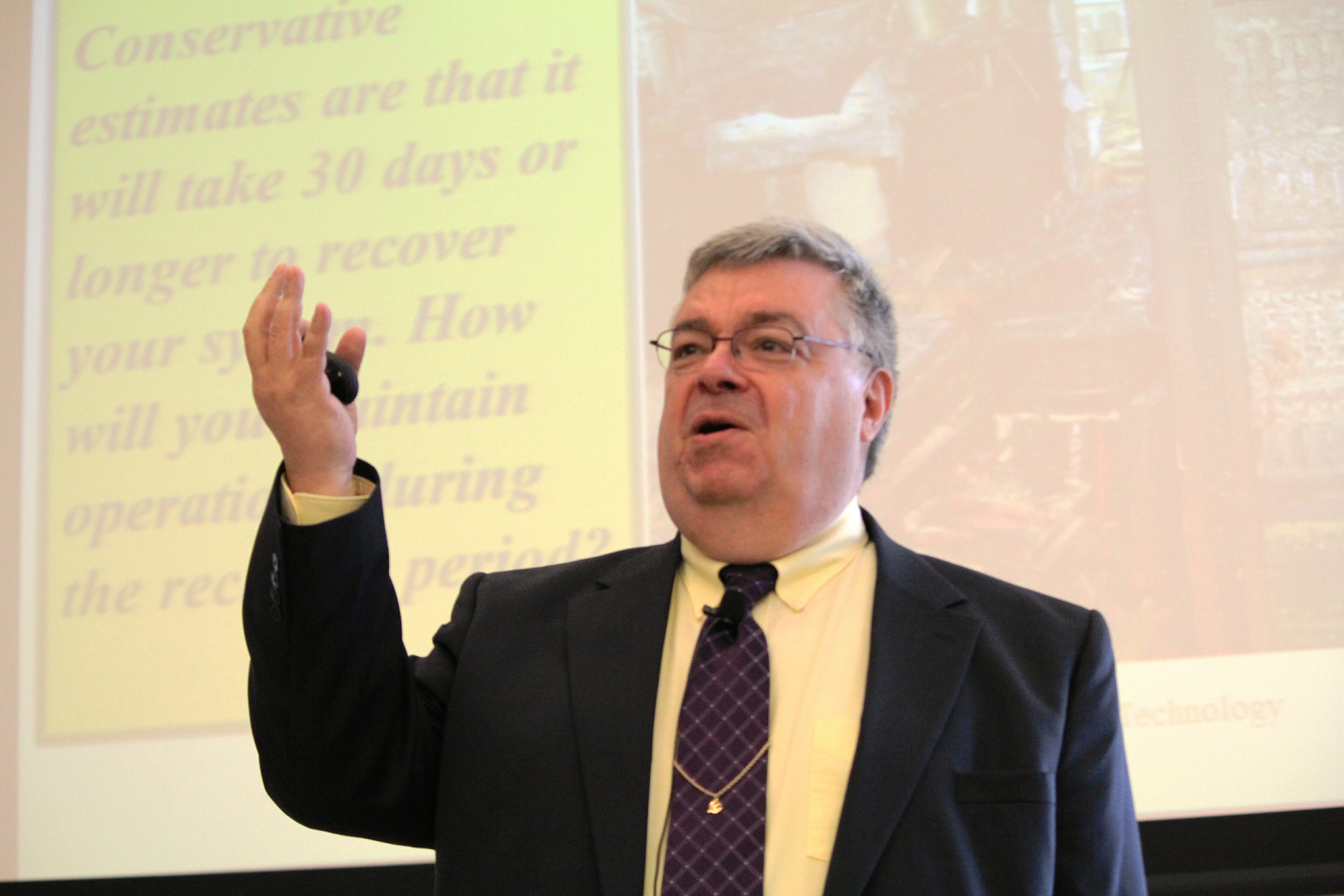 The first time I conducted an overview presentation for the Student Administration Directors, I was told that I scared them. I showed them the photo of the burned out data center and let them know about our water based fire suppression system. At first, they didn't believe me until the CIO confirmed the facts with them. Before I left UConn, I facilitated a 3-hour workshop with the Graduate School Dean and his administrative staff. I provided them with template for a Facilities Resilience Plan and a Pandemic Influenza Plan.I also recruited a few trainers who can carry on the program without me. I hope UConn continues this training program and it doesn't fall by the wayside.